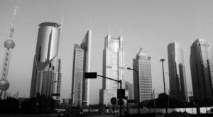 Figure 3. New development of Pudong, Shanghai. These buildings and urban developments are less than twenty years old. Shanghai has become one of the most influential financial, trading, economic, and communication centers in Asia. The Pudong District is filled with symbolic buildings, including the oriental Pearl Tower, the Jin Mao Tower, the Shanghai World Financial Center, and the under-construction Shanghai Tower.